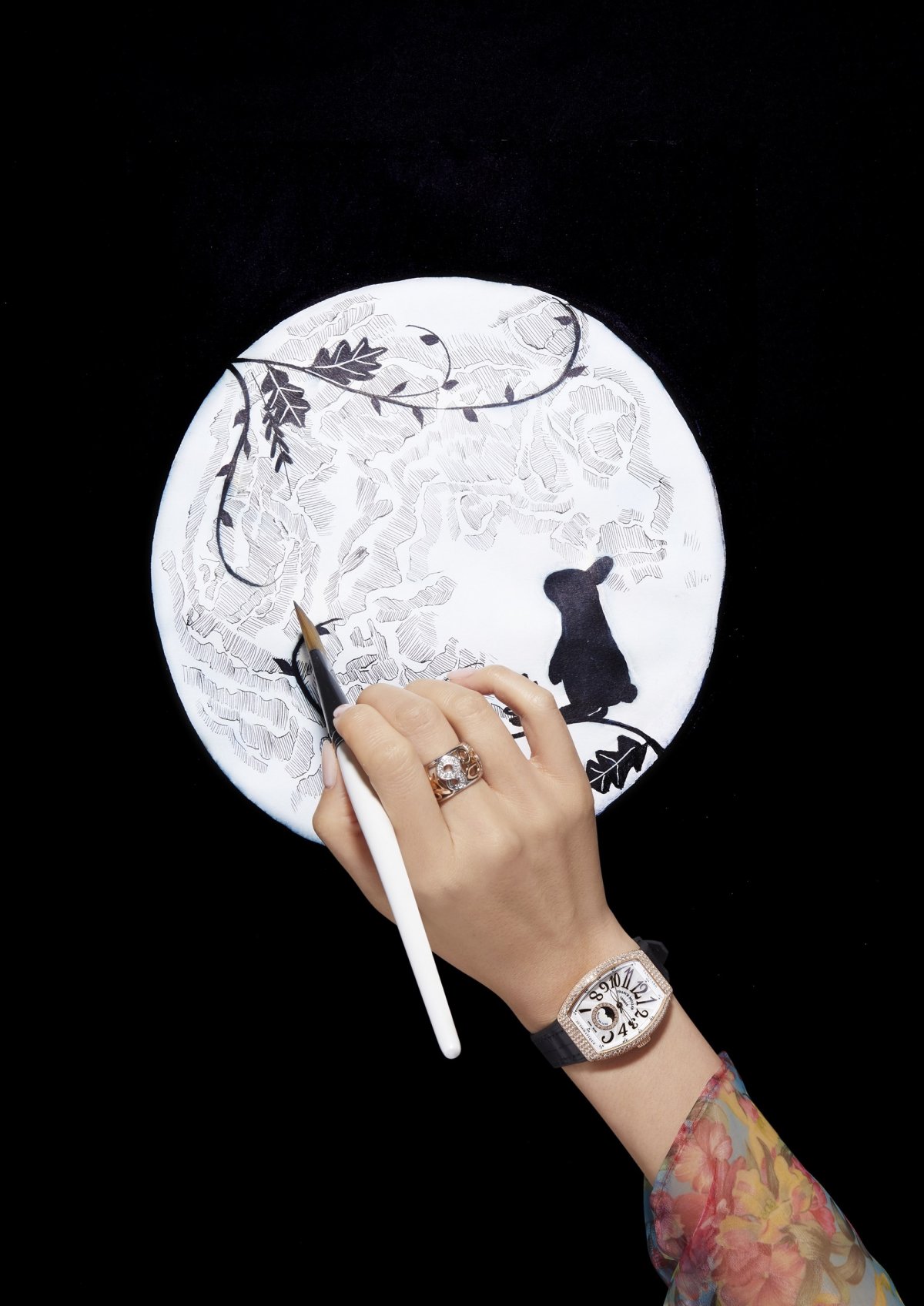 FRANCK MULLER因應中秋佳節推出了腕錶,包括運動奢華的Vanguard Lady Moonphase和高貴優雅的Cintrée Curvex Lady Moonphase,與您共品腕上月影。藉著團圓佳節,讓明月與時光於腕間邂逅,點綴出獨特優雅的氣質。太陽壓紋錶盤的6時位置設有月相顯示,玫瑰金的錶圈上鑲有鑽石,整體優雅高貴,非常能夠展現女性魅力。