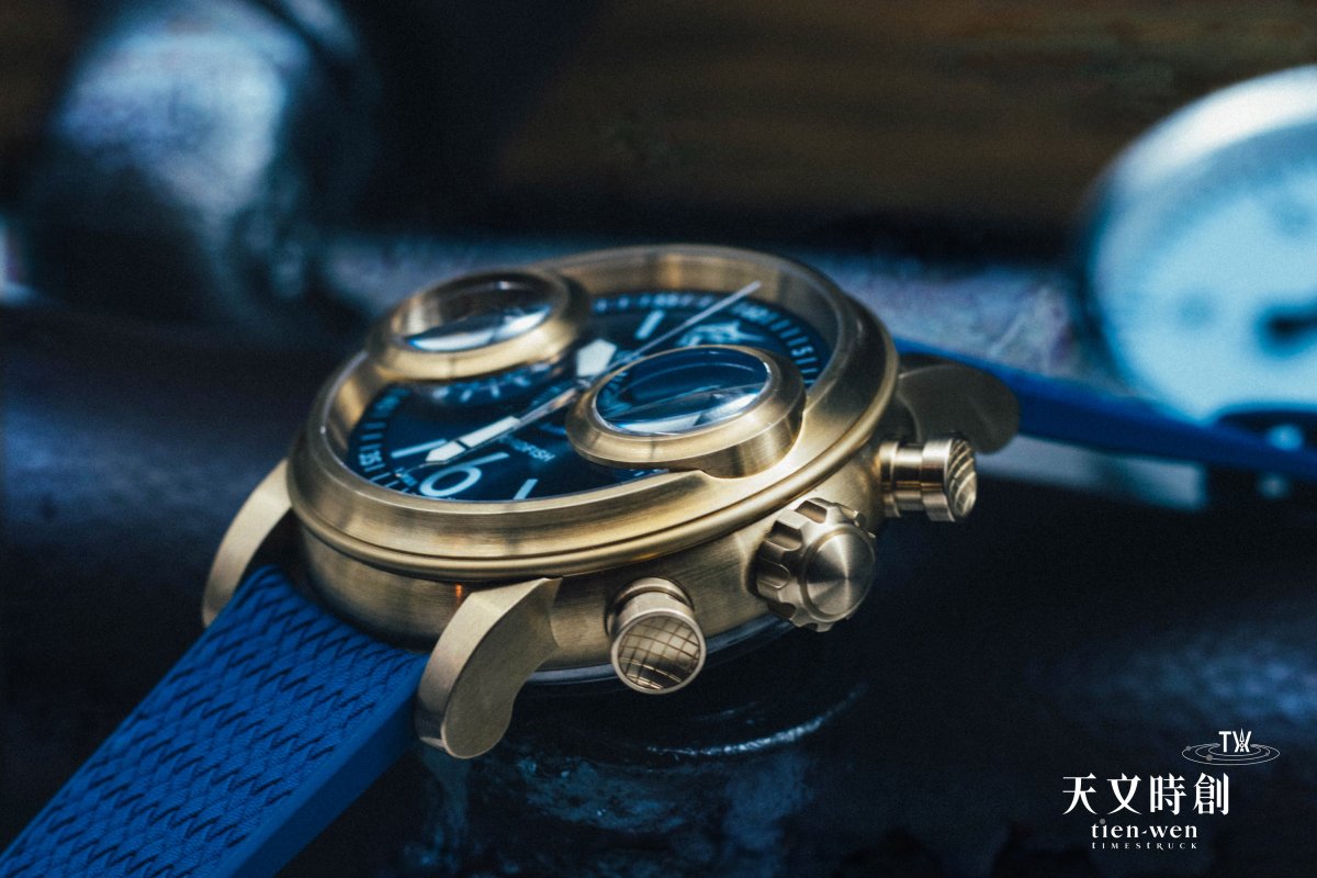 青銅錶殼,錶徑46毫米,時、分、小秒針、計時,G1710自動上鍊機芯,藍寶石水晶鏡面及底蓋,防水100米,限量33只