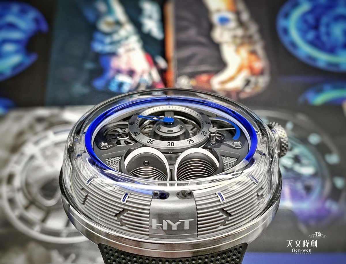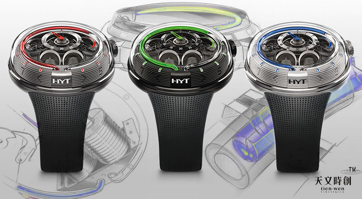 HYT 左H1.0右H1,H1.0腕錶在面盤上做變化,顯露更多機芯部件,展現立體層次感,錶殼外緣以鏤空數字嵌入深凹槽,呼應時間的流動感主題