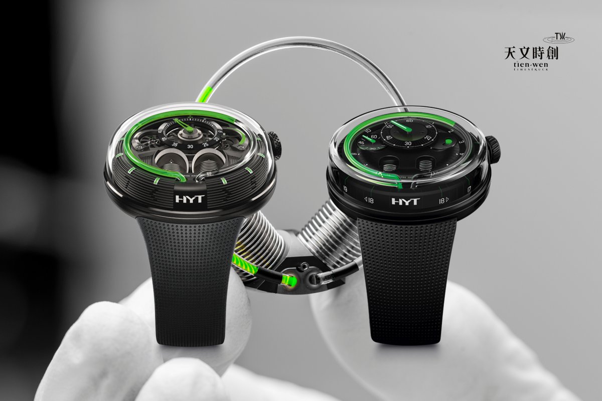 HYT的答案,是一枚克服地心引力的腕錶,使用液體展現時間的流逝。HYT 秉持著獨特創新的理念,借鏡於傳統高級製錶技藝並作大膽的嘗試,可謂腕錶界的煉金術士,以水來顯示時間絕對是製錶界的巨大挑戰。把兩個截然相反的世界融合在一起。繼埃及人發明法老王的水鐘後,從沒有人能衝破萬有引力定律。今天,HYT 打破了此如冰封的定局,將水的能量運用於便攜式腕錶中。做為一個切切實實的嶄新理念創造者,HYT 液態機械製錶工程研究所的團隊將 力求創新,把製錶的混合動力技術推至更高層次。
