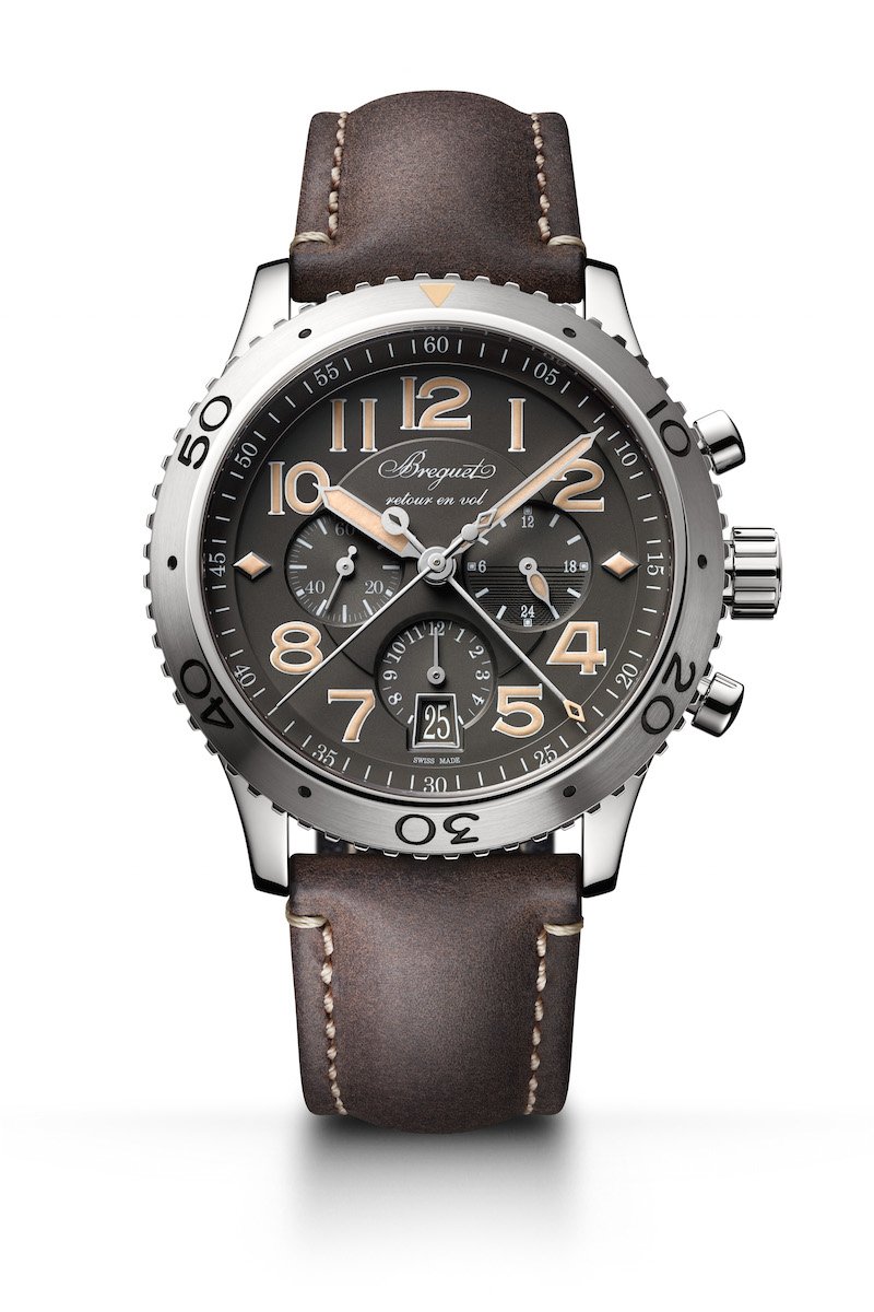 全新Type XXI 3817計時碼錶,復古造型卻體現了Type XXI飛行錶的歷史起源。配襯小牛皮錶帶,42毫米錶殼,尺寸適中,錶殼側面錢幣紋延續寶璣經典風格,灰石板色面盤,低調細緻,螺絲鎖定錶冠確保防水深度達100米。自動上鍊機芯,具備自1954年以來便已成為Type XX特色的飛返計時功能。矽材質技術的運用,為新一代584Q / 2計時機芯賦與絕佳精準性能。 為了提升飛返計時碼錶的閱讀清晰度,計時碼錶的分針及秒針皆採中置設計,一眼便能輕易判讀,而3點鐘位置則是24小時制日夜顯示,即使傲遊於天際間也能正確掌握時間。Type XXI 3817為Type XX系列首款裝配藍寶石水晶底蓋的款式,讓鐘錶愛好者能夠清楚欣賞機芯的每一個細節。