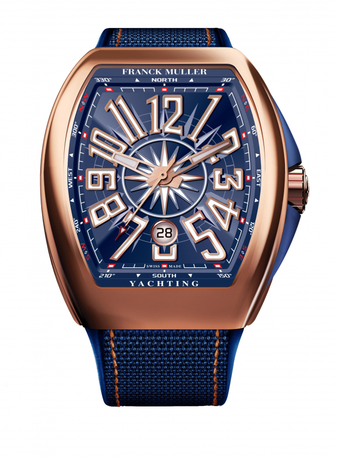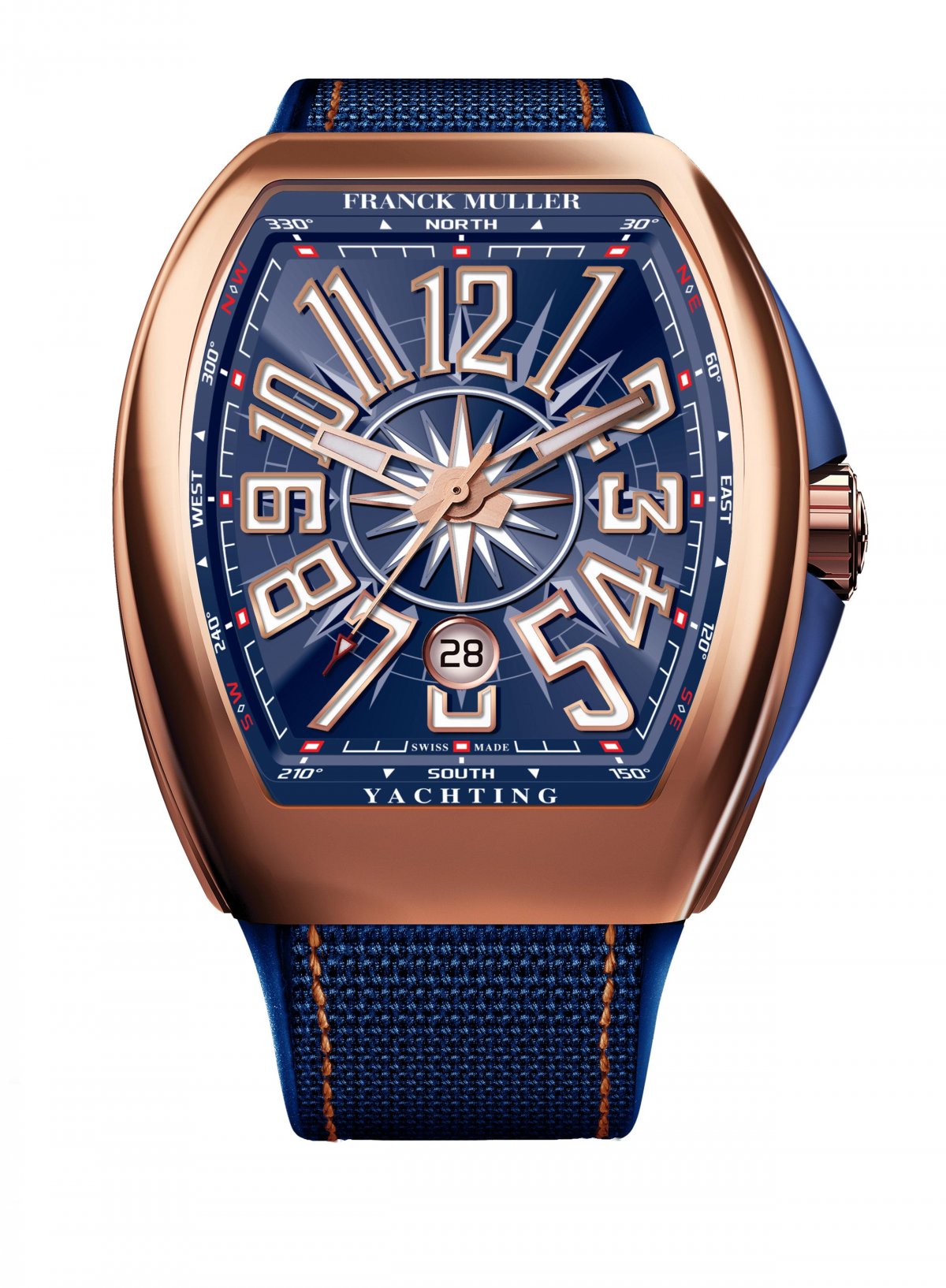 Vanguard Yachting系列採用航海世界的細節,以創新方式展現時間。不僅讓人想起FRANCK MULLER與Italian Sea Group聯合打造遊艇的獨特曲線,深藍色錶殼飾以風向圖的錶盤,更使佩戴者仿如置身海洋世界之中。錶盤上清晰易讀的斗大立體浮標數字,與充滿曲弧線條錶殼的前衛設計不謀而合,全面體現腕錶和遊艇的優雅氣質、獨有曲線和精準技術性能特點。