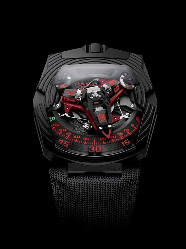 URWERK UR-210 BLACK PLATINUM 型號:UR-210 BPT 機芯 UR-7.10 自動上鍊機芯,渦輪葉調節動力儲存39小時 功能 衛星小時、立體回撥分針、動力儲備顯示、專利上鏈效率顯示器限量20只 錶殼、錶盤和指針 53.6 × 43.8 mm鉑金及鈦金屬錶殼,黑色類鑽碳塗層處理 錶帶和錶扣 布紋錶帶 分享到: