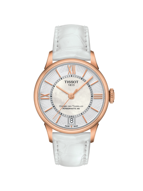 TISSOT TISSOT CHEMIN DES TOURELLES POWERMATIC 80 LADY 型號:T099.207.36.118.00 機芯 POWERMATIC 80.111 功能 時、分、秒、日期顯示 錶殼、錶盤和指針 32mm 玫瑰金PVD鍍層316L精鋼錶殼 錶帶和錶扣 皮革 分享到: