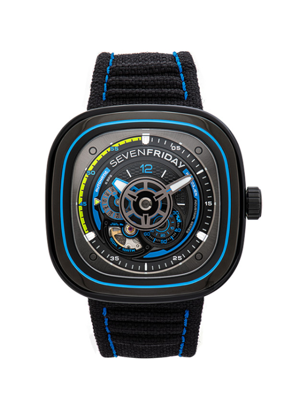 SEVENFRIDAY P3C/03 型號:P3C/03 機芯 Miyota 82S7 自動上鍊機芯 功能 夜光時/分針顯示,雙指標秒針盤顯示,24小時顯示 錶殼、錶盤和指針 黑色PVD 不鏽鋼錶殼 直徑47.6 x 47 mm 錶帶和錶扣 藍色車線黑色帆布面錶帶 分享到: