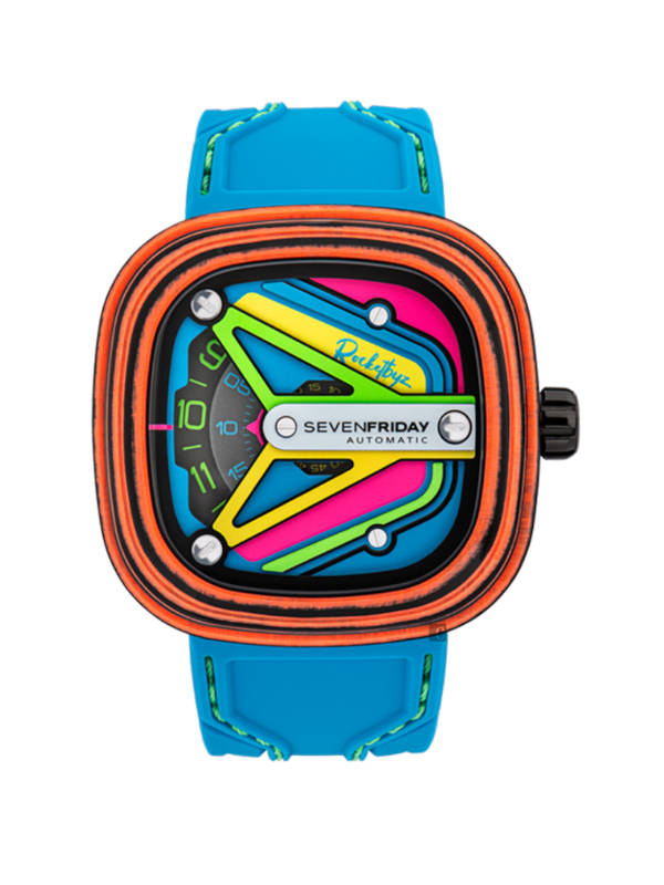 SEVENFRIDAY M3/05 型號:M3/05 機芯 自動MIYOTA 8215 功能 時間顯示 錶殼、錶盤和指針 五層,交替塗有霓虹粉紅色,黃色,綠色,藍色油漆(特定於M3 / 03) 綠色SEVENFRIDAY標誌板,綠色Rocketbyz標誌 帶有黃色,綠色和粉紅色霓虹燈阿拉伯數字,黃色指針的光盤 錶帶和錶扣 白色矽膠錶帶,配以霓虹粉色縫線 分享到: