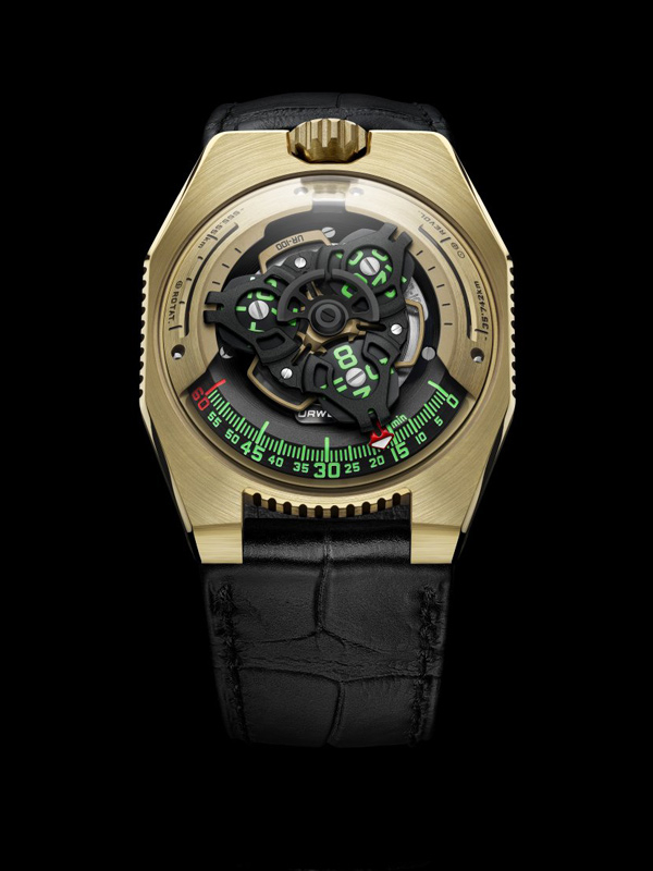 URWERK UR-100 C-3PO 型號: 機芯 UR12.01自動上鏈機芯,URWERK專利行星齒輪扁平渦輪葉調節擺陀上鏈 功能 衛星小時/分鐘,地球赤道自轉 20分鐘的距離,地球公轉 20分鐘的距離 錶殼、錶盤和指針 鋁金屬錶殼 錶帶和錶扣 分享到: