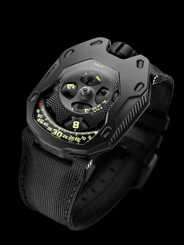 URWERK UR-105 TA 型號: 機芯 UR-5.01 自動上鍊機芯,雙渦輪葉調節系統 功能 衛星小時、分鐘顯示 錶殼、錶盤和指針 黑色 PVD 鈦金屬錶殼,黑色 PVD 鋼錶圈 錶帶和錶扣 分享到: